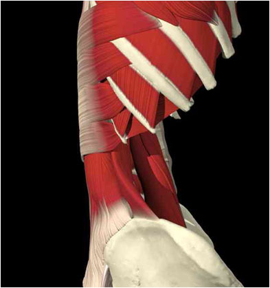 The musculature of the spine is truly complicated. For some reason, this area in gross anatomy gave me fits in medical school - too many complex layers of muscle, and each with its own obscure Latin name. It made my head hurt. Take my word for it - there are a lot of spinal muscles. It is important to keep in mind that the abdominal and trunk muscles also play a key role in supporting the spine.